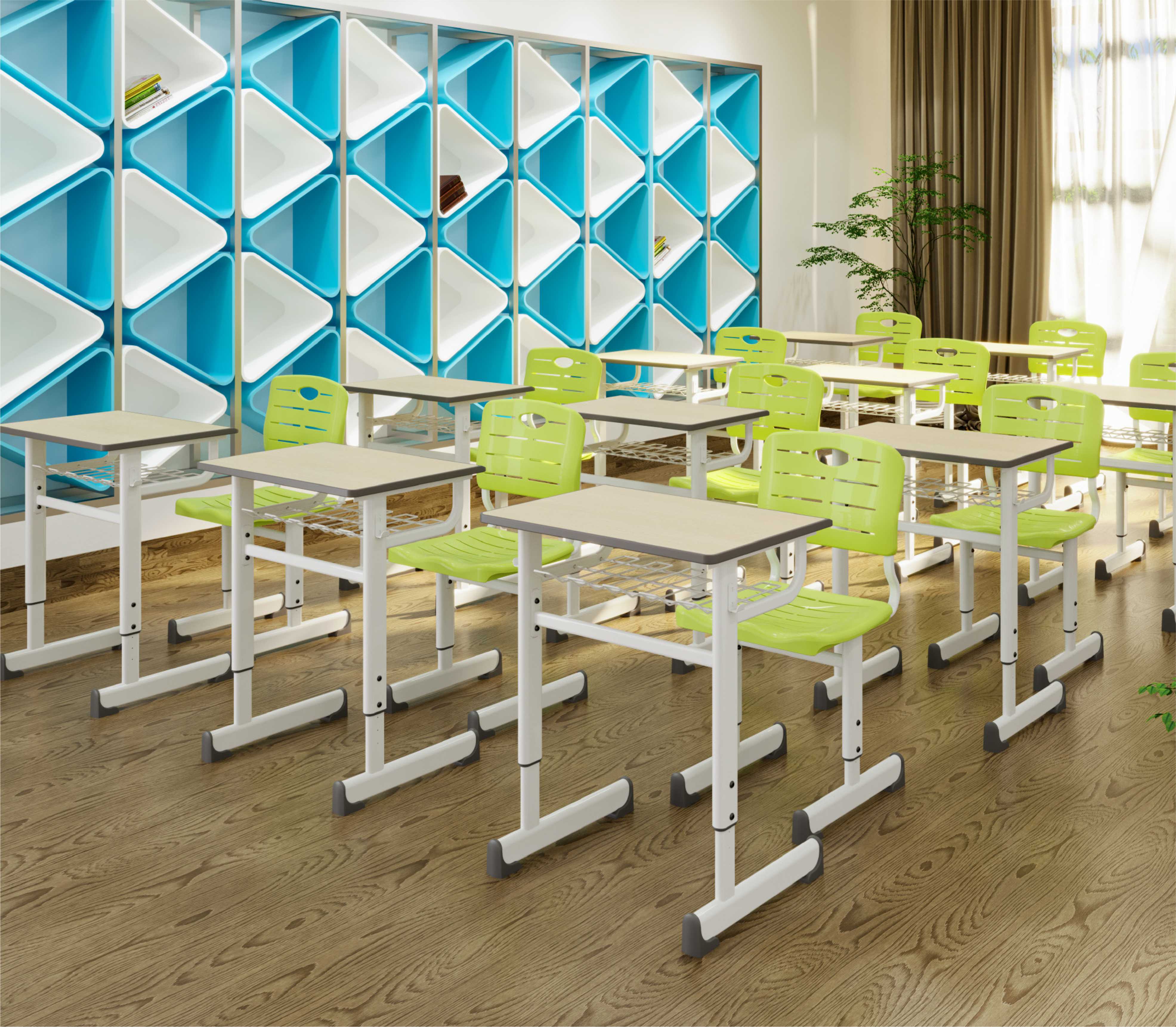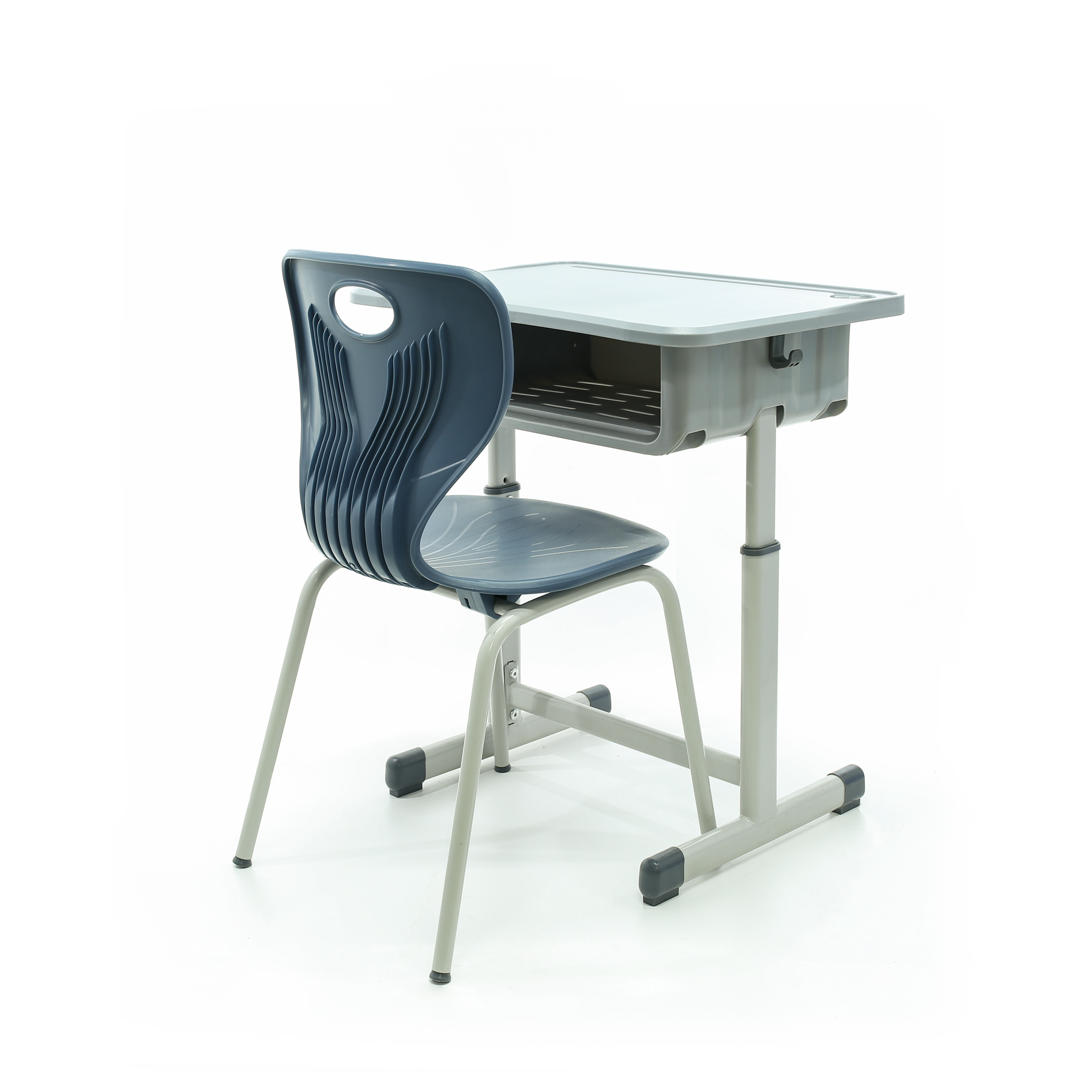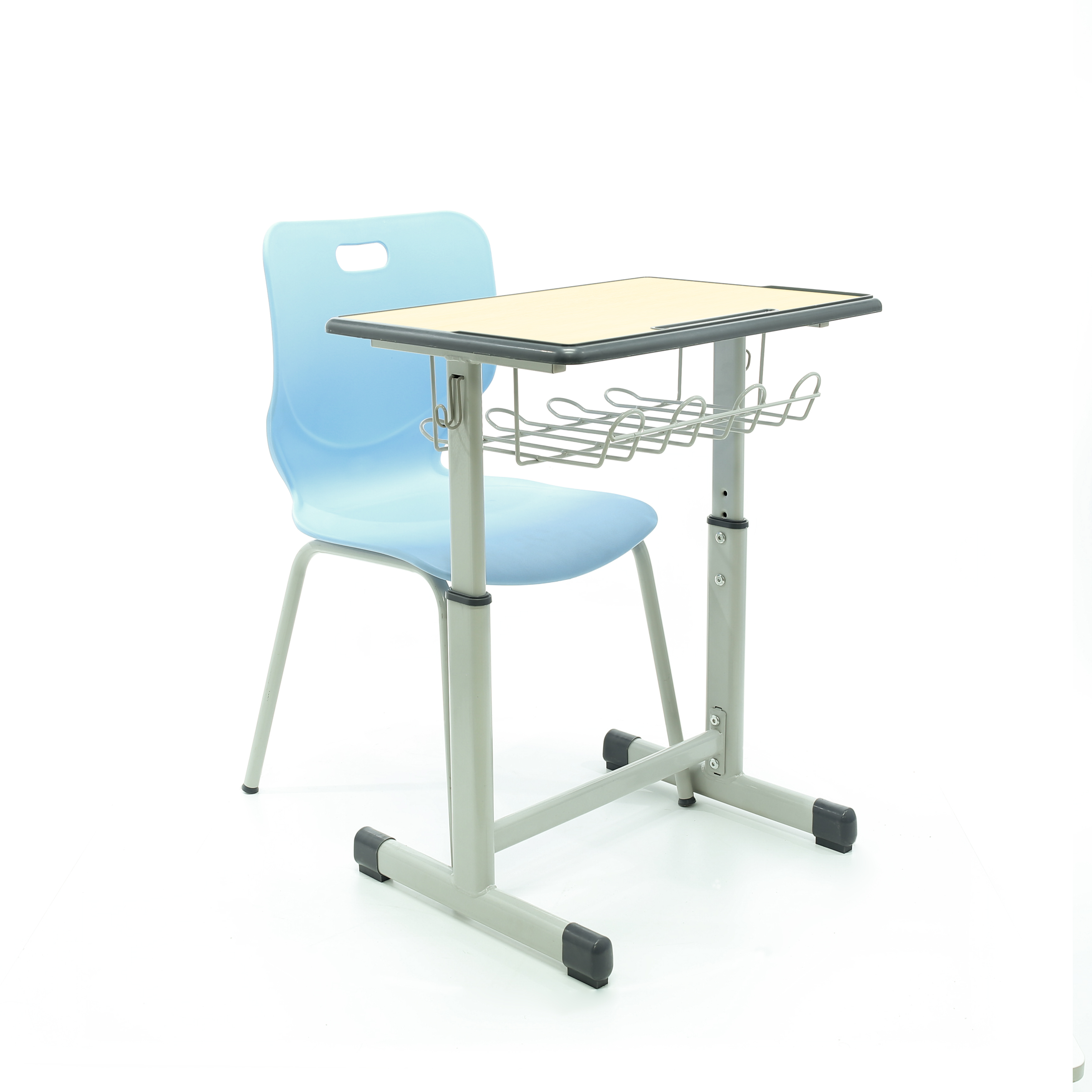 Desktop is made of high quality MDF board with PP injection edge wrapping, you can choose many other size, with metal upright frame. Chair with plastic seat and backrest, with metal frame base. Breathable seats, durable & anti-slip floor caps prevent desk and chair from slipping and reduces any noise.